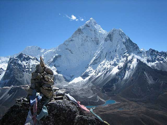 Like the Matterhorn in the Swiss Alps, Ama Dablam epitomizes all that is grand about the mountains. Its striking features have become a familiar figure to the public through its adoption as the logo of 'Perpetual', an international assurance company, and numerous posters and books throughout the world. Such impressive beauty has made Ama Dablam a highly coveted prize for climbers. Since its first ascent in 1961 by an Anglo-American-New Zealand team, it has been climbed frequently and by many different routes.