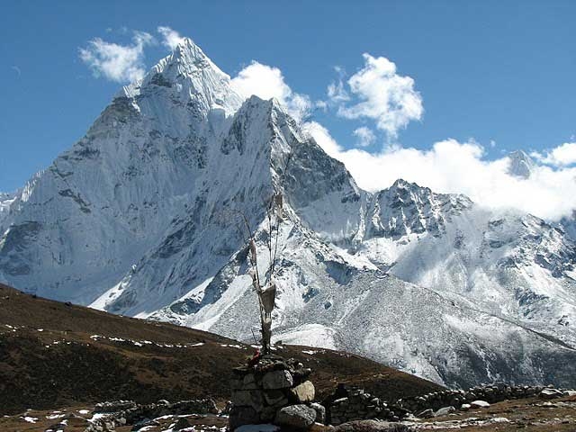 The trail makes a gradual descent through scrub junipers and around Mani stones as it follows the hillside. The trail passes many Mani walls in deep rhododendron forests where crossing after the Imja khola, the trail climbs many carved Mani stones to Pangboche. Pangboche Gompa is the oldest in Khumbu; a visit will be well worth. Walk down to the valley from where the trail is shallower through alpine meadows. Followed by climb gradually up to Tengboche (3,870m/12,697ft) where the biggest monastery lies in the whole of Khumbu.