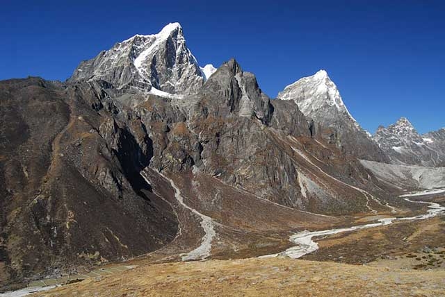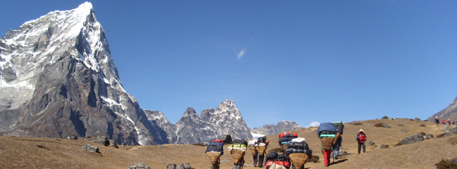 A. After meeting all your team and crew in Kathmandu we fly by helicopter, drive by vehicle or fixed wing plane directly to the destination and then we start for trekking. Acclimatizing along the way and relishing in the hospitality provided by our Sherpa friends we reach base camp and after some rest and preparation we begin the ascent. Base camp will be a collection of sleeping tents, as well as a large kitchen and dining tent. We utilize the services of specially trained Sherpa cooks and we import a lot of high quality food to supplement the local produce available. The guides and Sherpas will fix rope on the route and stock the camps with provisions and equipment. By utilizing fixed rope we can climb in average weather, and, if necessary descend to base camp with little problem in case of a major storm. Two or three climbing Sherpas will assist with the load carrying but no more will be engaged in order to avoid clogging the route and spoiling the nature of the climb. When the fixed line is in place, and the two camps are established and stocked, we will climb back up the ropes and make a bid for the summit. Sufficient supplies will be available to support all members. Guides and Sherpas will carry all group gear but members are expected to carry their own personal gear. Radios will be used to co-ordinate the movements on the mountain and provide a safety back-up for the lead team.